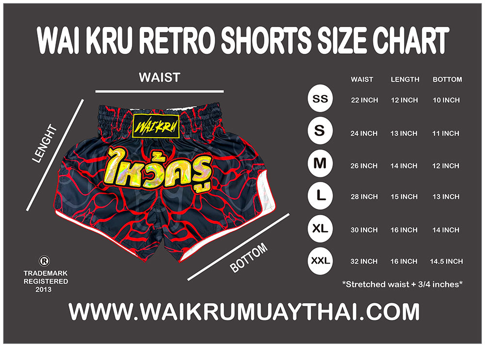 Let Wai Kru bring your vision to life with our premium custom Muay Thai gear. We specialize in fully customized shorts, crafted to your personal taste using your choice of satin, nylon, or microfiber to create the perfect personalized gear for you.